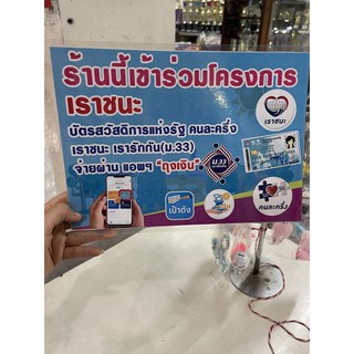 รองโฆษกสำนักนายกรัฐมนตรี เตือนร้านค้าร่วมโครงการเราชนะ หากโก่งราคา หรือขายแพงเกินจริง จ่อโทษจำคุก 7 ปี ปรับ 1.4 แสนบาท. คนถือ บัตรสวัสดิการแห่งรัฐ บัตรคนจน รูดใช้วงเงิน เราชนะ ได้ที่ไหน? ขณะนี้ มีผู้ได้รับสิทธิโครงการเราชนะ แล้ว 28.1 ล้านคน เกิดมูลค่าใช้จ่ายแล้วกว่า 38,524.6 ล้านบาท ผ่านร้านค้า และผู้ให้บริการรายย่อย ที่ร่วมโครงการ. ป้ายอิงค์เจ็ท, ป้ายไวนิล, รับทำไวนิล, รับพิมพ์ไวนิล | tag: เช็กจุดลงทะเบียน เราชนะ เพิ่ม ใครไม่มีสมาร์ทโฟน ใกล้ที่ไหนไปที่นั่น!